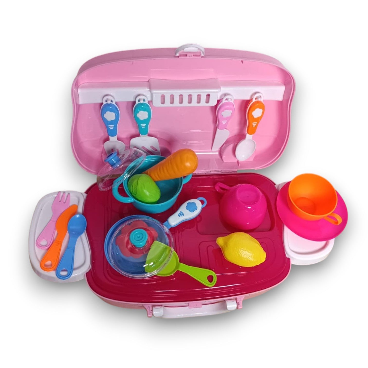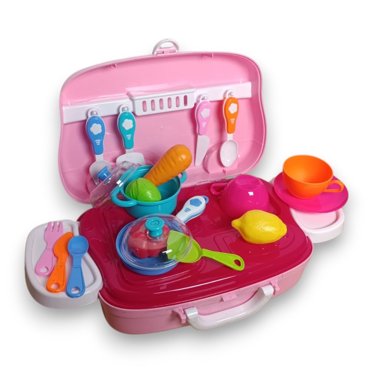 El set portátil de cocina Happy Chef fomenta la creatividad y el juego simbólico, permitiendo a los niños explorar su lado culinario de manera segura y divertida. Con piezas realistas y materiales resistentes, es ideal para actividades en casa o como regalo educativo.