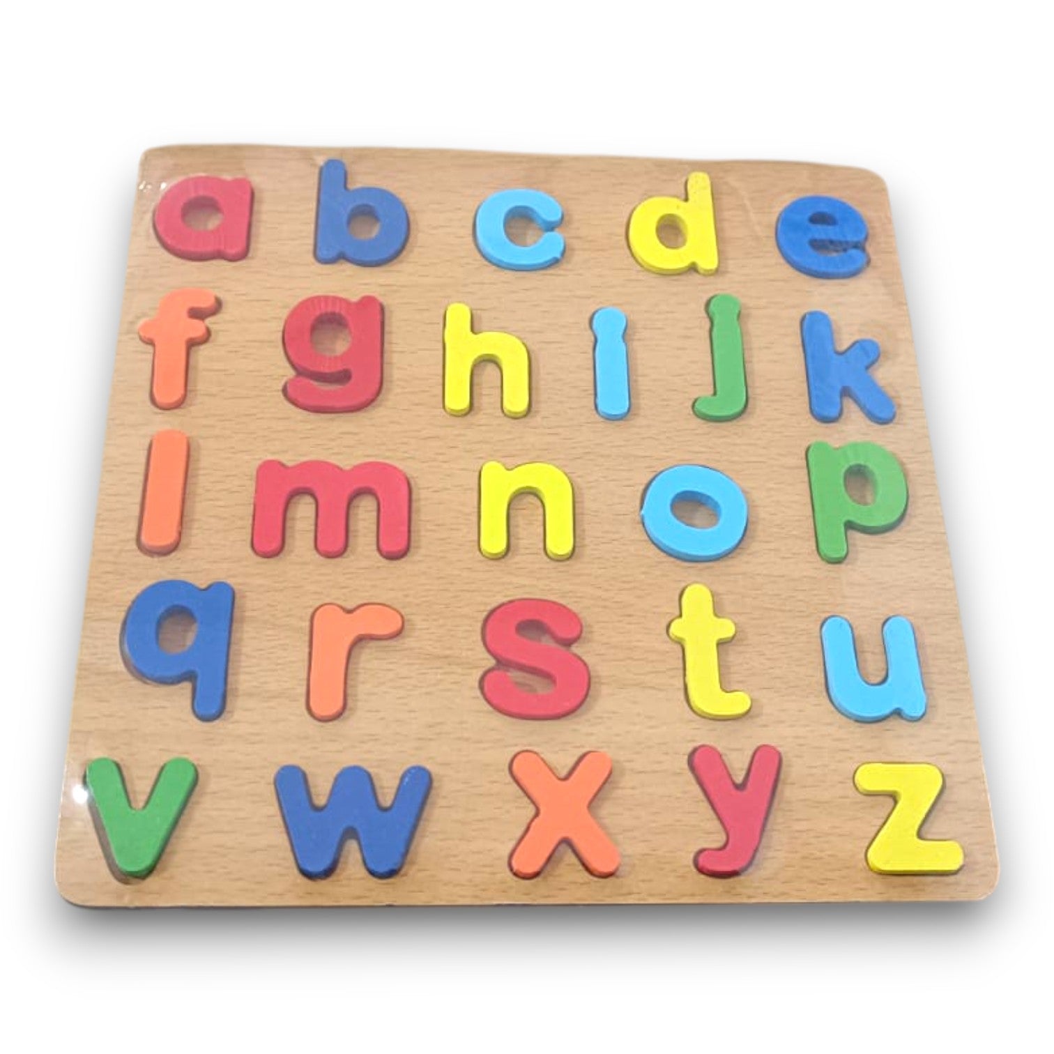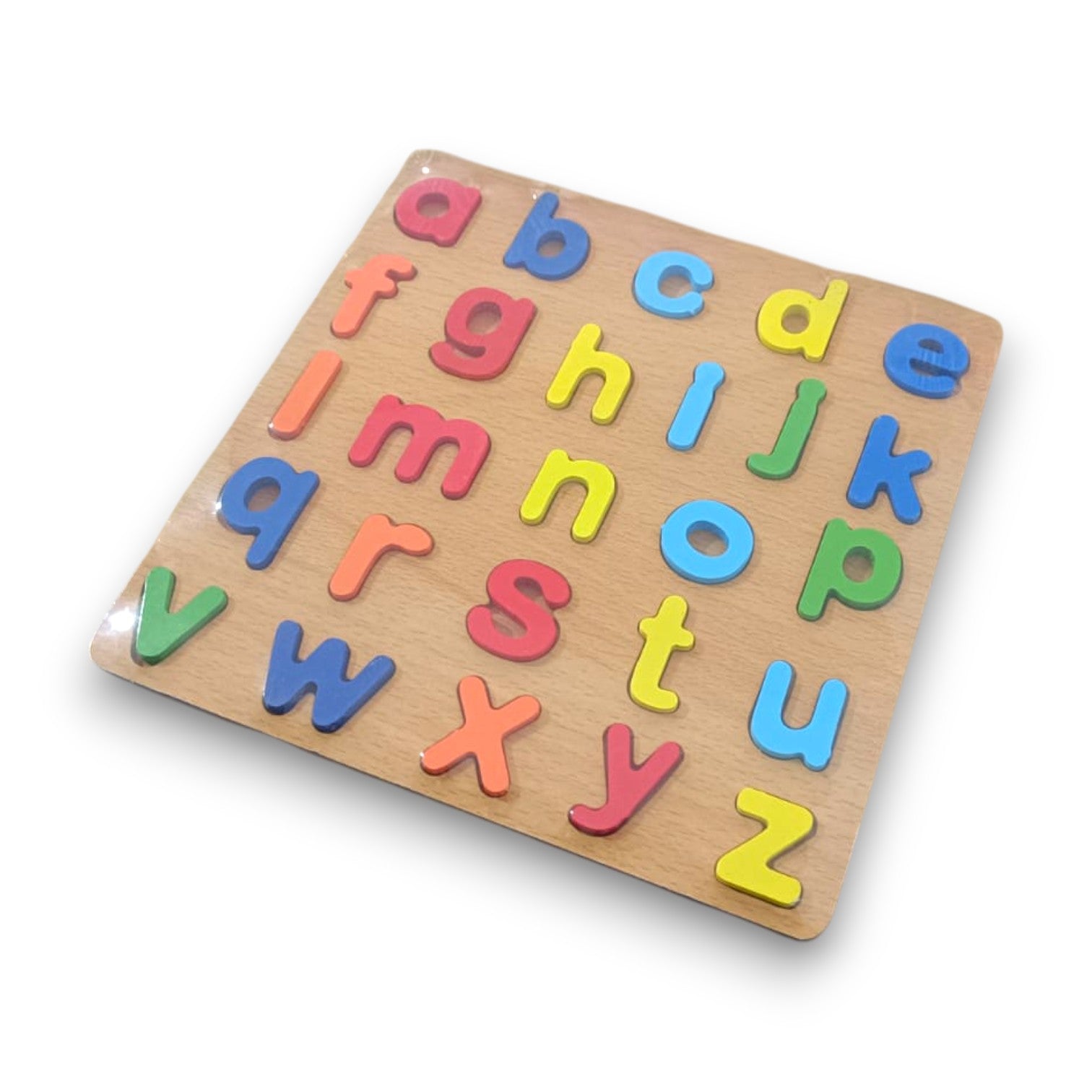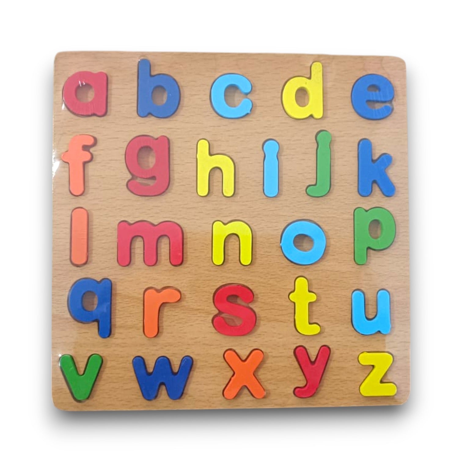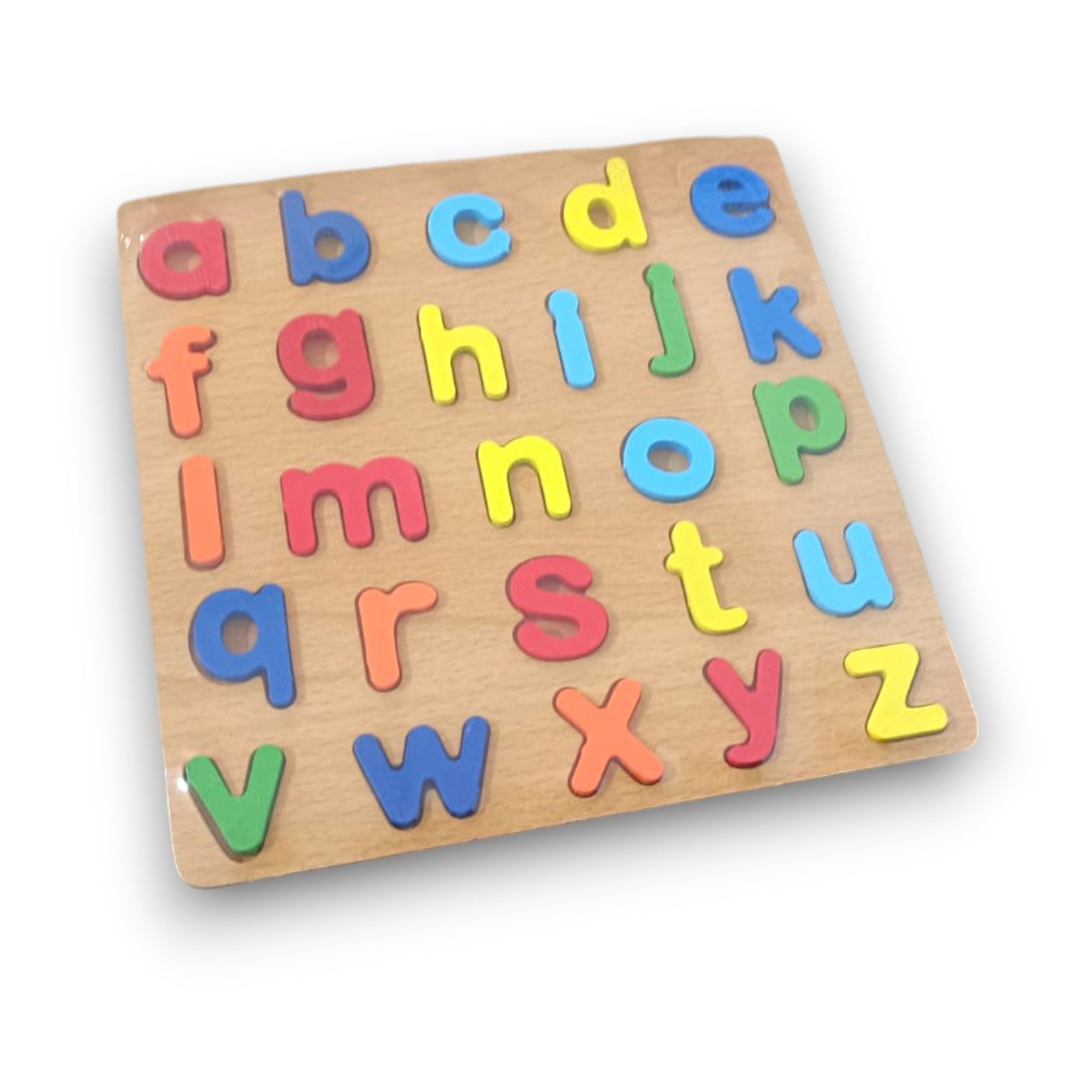 Aprender el abecedario nunca fue tan divertido. Este rompecabezas de madera con letras minúsculas de colores ayuda a los niños a reconocer las letras, mejorar su motricidad fina y desarrollar la concentración mientras juegan.
