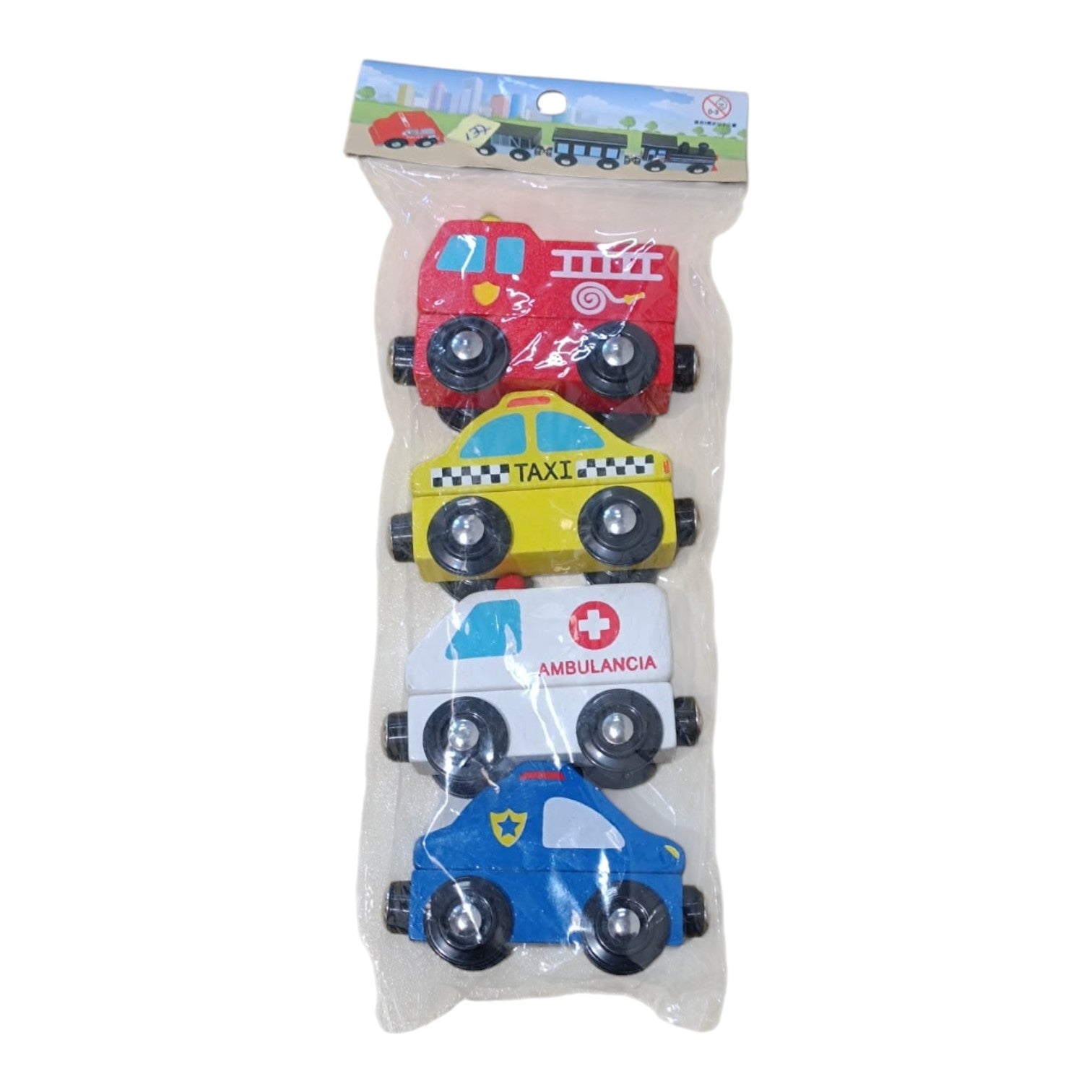 Set de 4 Vehículos de Madera con Imanes – Estilo Tren