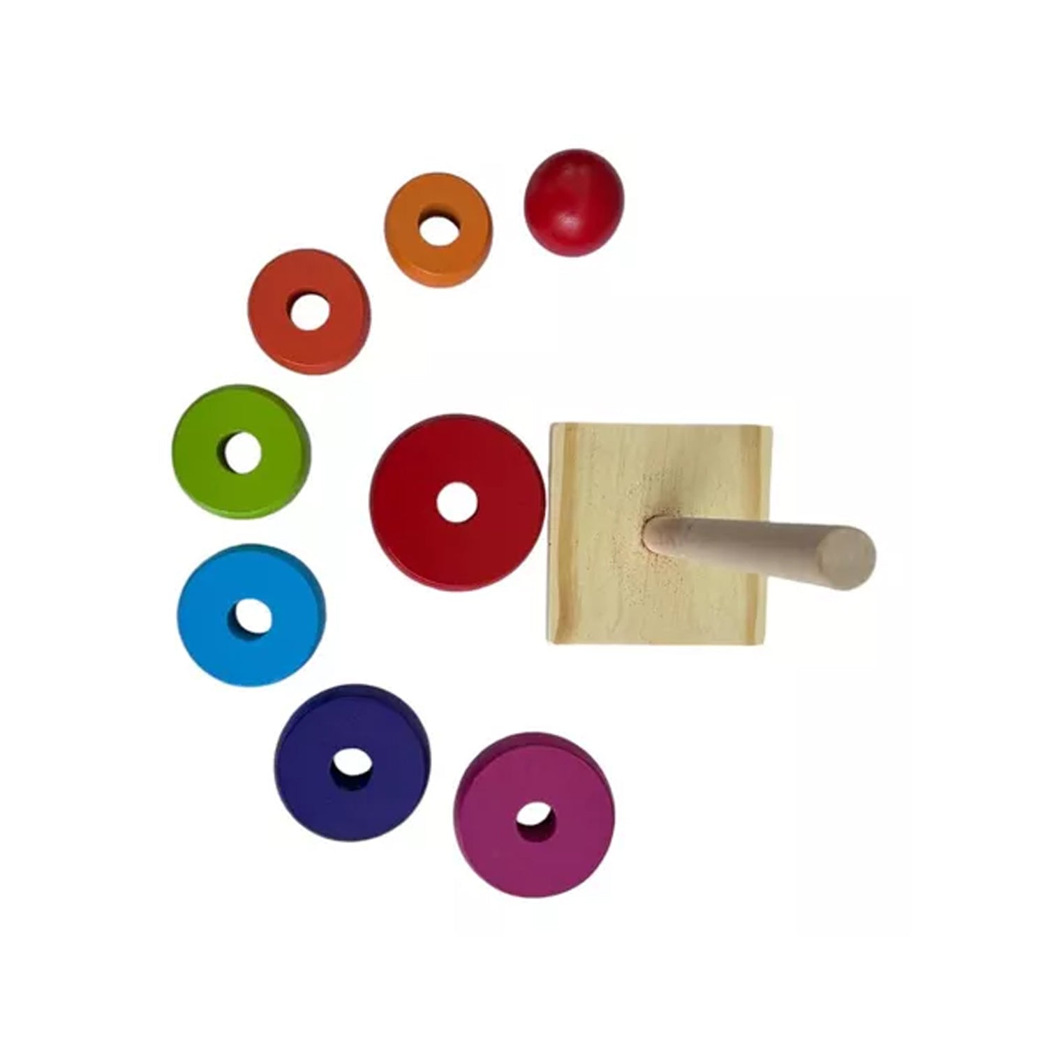 Esta torre educativa es perfecta para niños de 3 a 4 años. Con 7 argollas de colores, ayuda a desarrollar coordinación mano-ojo, reconocimiento de colores y habilidades motoras finas mientras juegan.